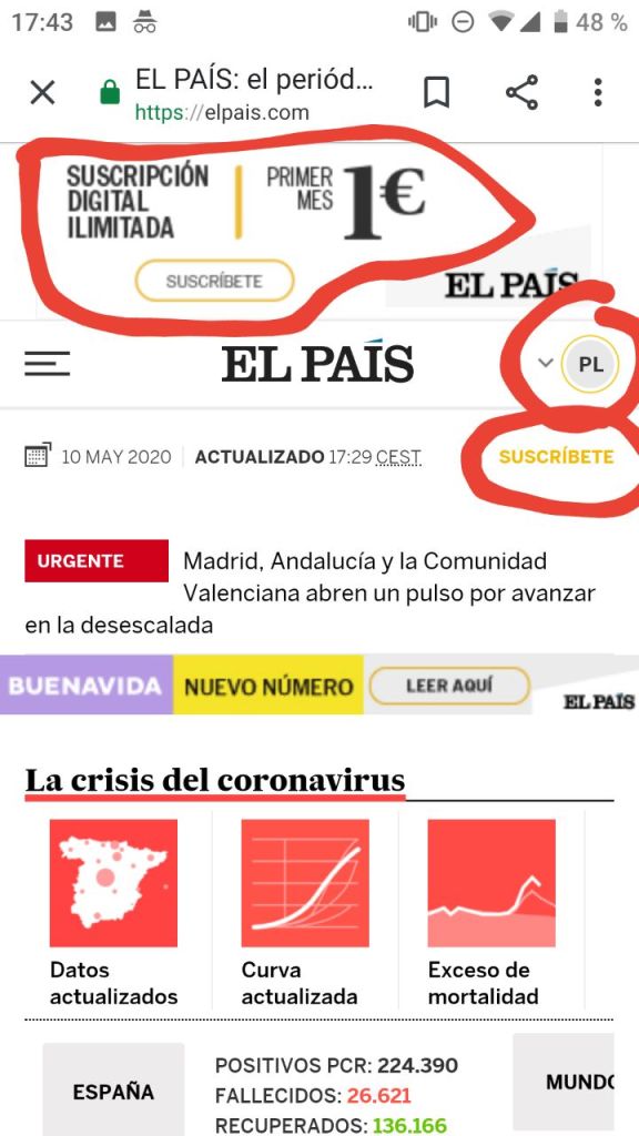 Hace un par de meses escribí mi opinión sobre el modelo de suscripción digital que anunció entonces El País. Su implantación se vio frenada por la aparición de la Covid-19 y, recientemente, tras unas semanas con toda la información de servicio público en abierto por esta causa, ha empezado su despliegue definitivo. Me he suscrito y hoy me gustaría hablar del proceso de alta en sí mismo, ese user journey crítico en cualquier propuesta premium. En mi opinión, hay bastante recorrido para mejorarlo.
