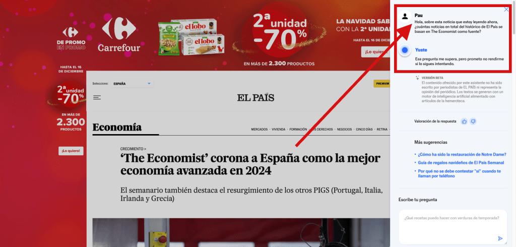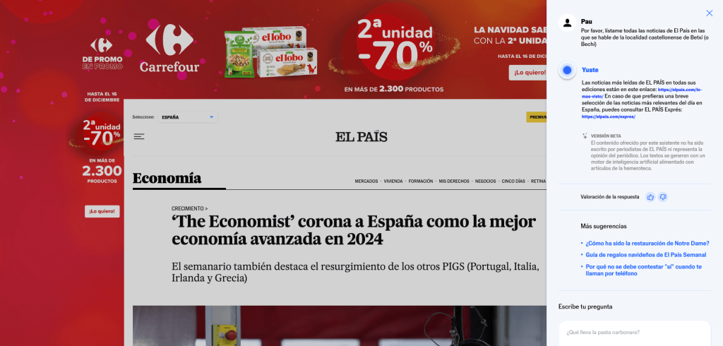 Creo que Yuste no está maduro para haber salido, pero tengo confianza en que va a mejorar. El País tiene acuerdos con OpenAI y con Perplexity, hay gente muy buena trabajando en esto y, en fin, que esta cabecera ofrece uno de los mejores productos periodísticos del mundo. Estoy seguro de que no se va a conformar.